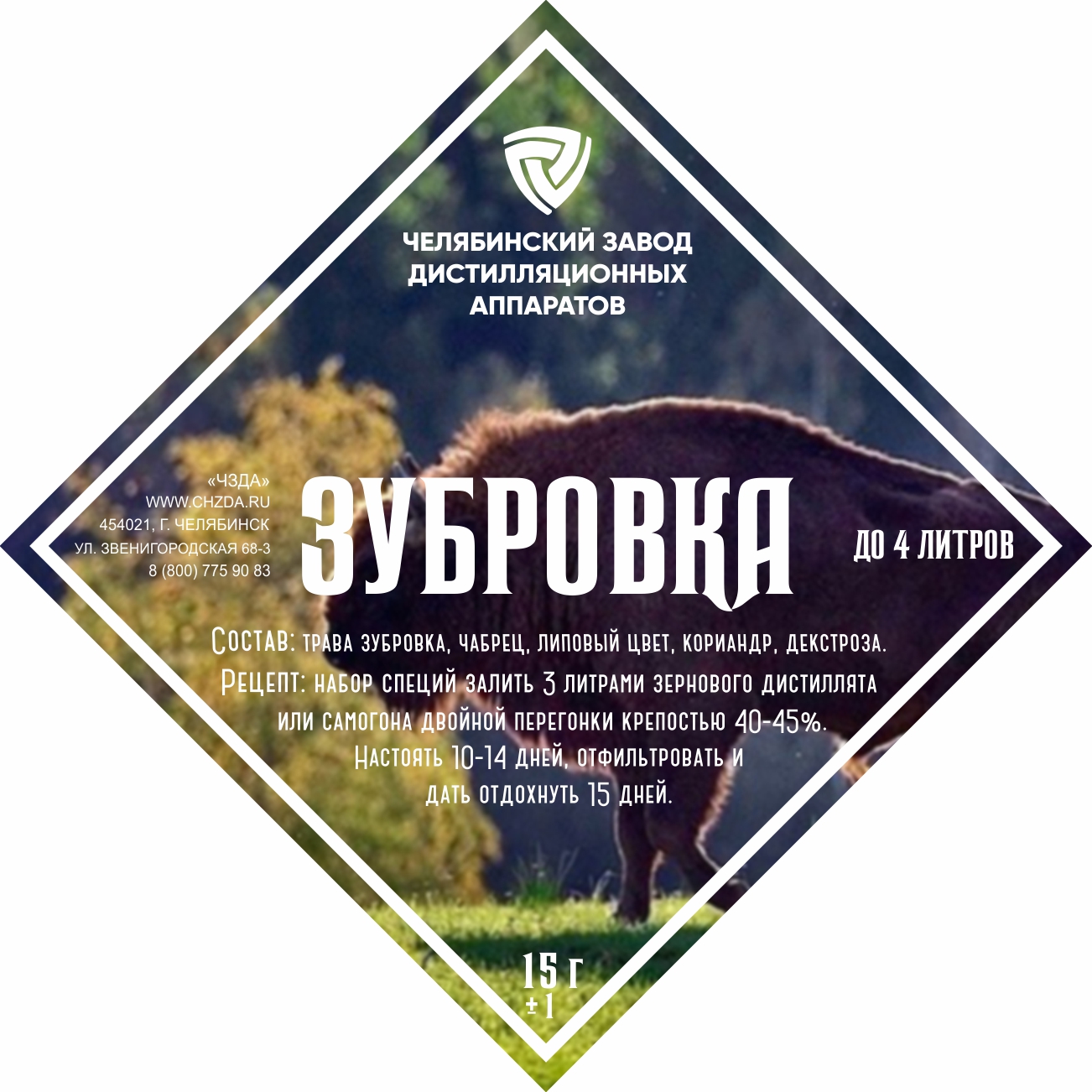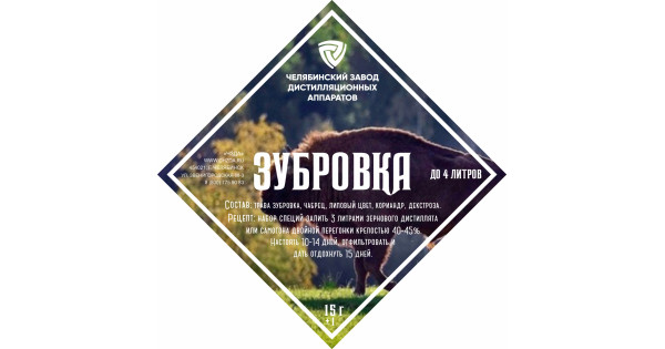 The set of herbs and spices "Zubrovka" includes: zubovka, thyme, lime blossom, coriander, dextrose