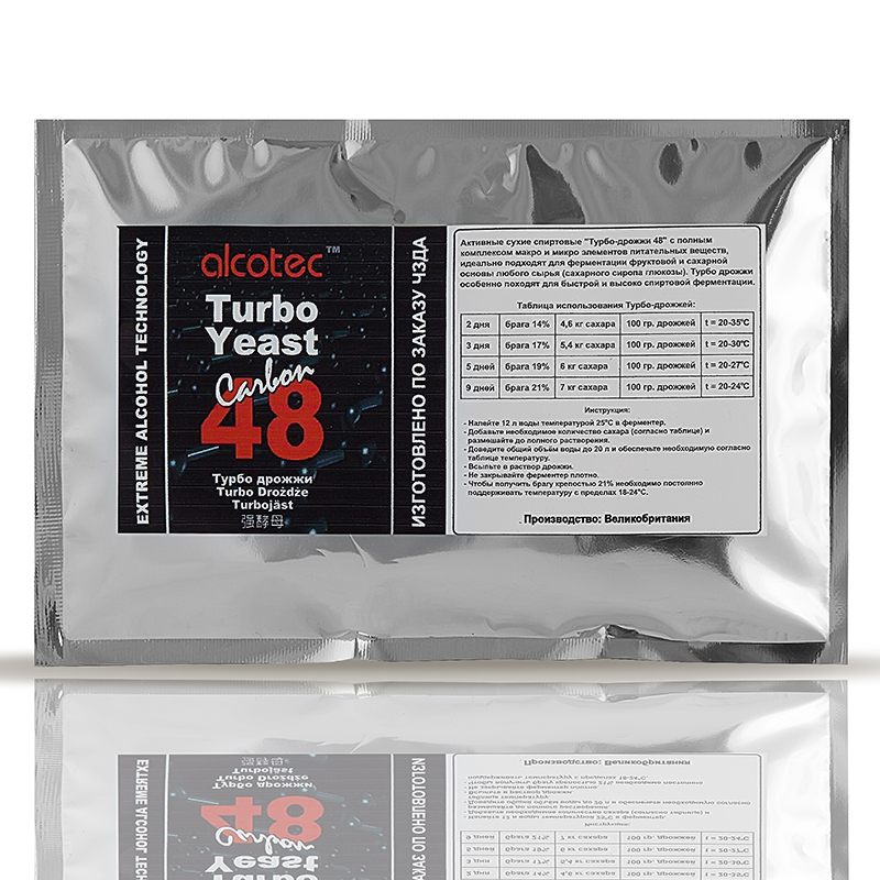 Active dry alcoholic turbo-yeast "48" with a full complex of macro and micro elements of nutrients is ideal for fermenting the fruit and sugar base of any raw material (sugar glucose syrup). Turbo yeast is especially suitable for fast and h..