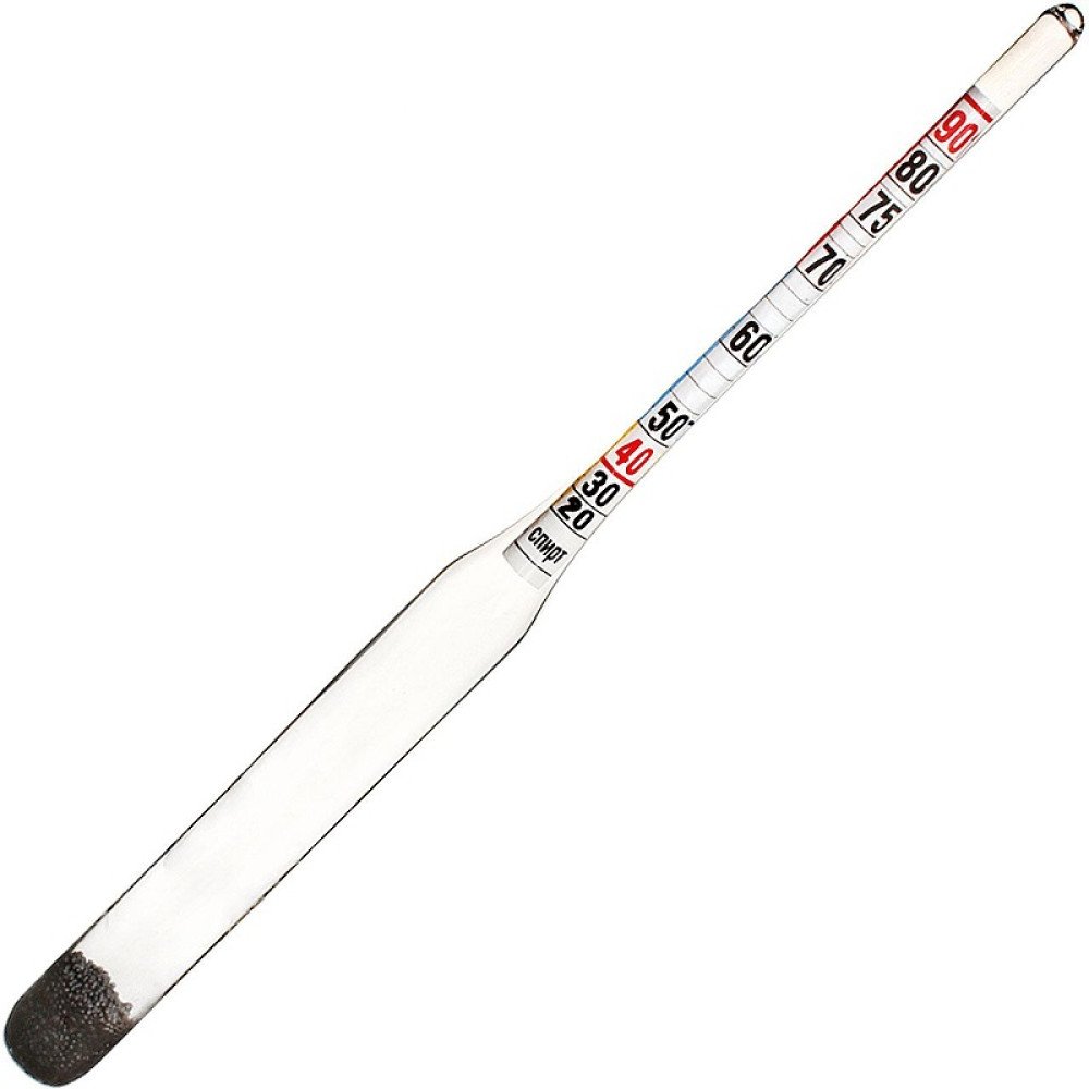 Note: All alcohol areometers (except optical, electronic and wine meter) are designed to work with liquids containing only ethyl alcohol and water. Any other impurities (sugar, juice, tannins after infusion in the barrel, heavy metal salts in water, and even fusel oils of poorly cleaned moonshine) change the density of the solution, leading to inaccurate measurements.